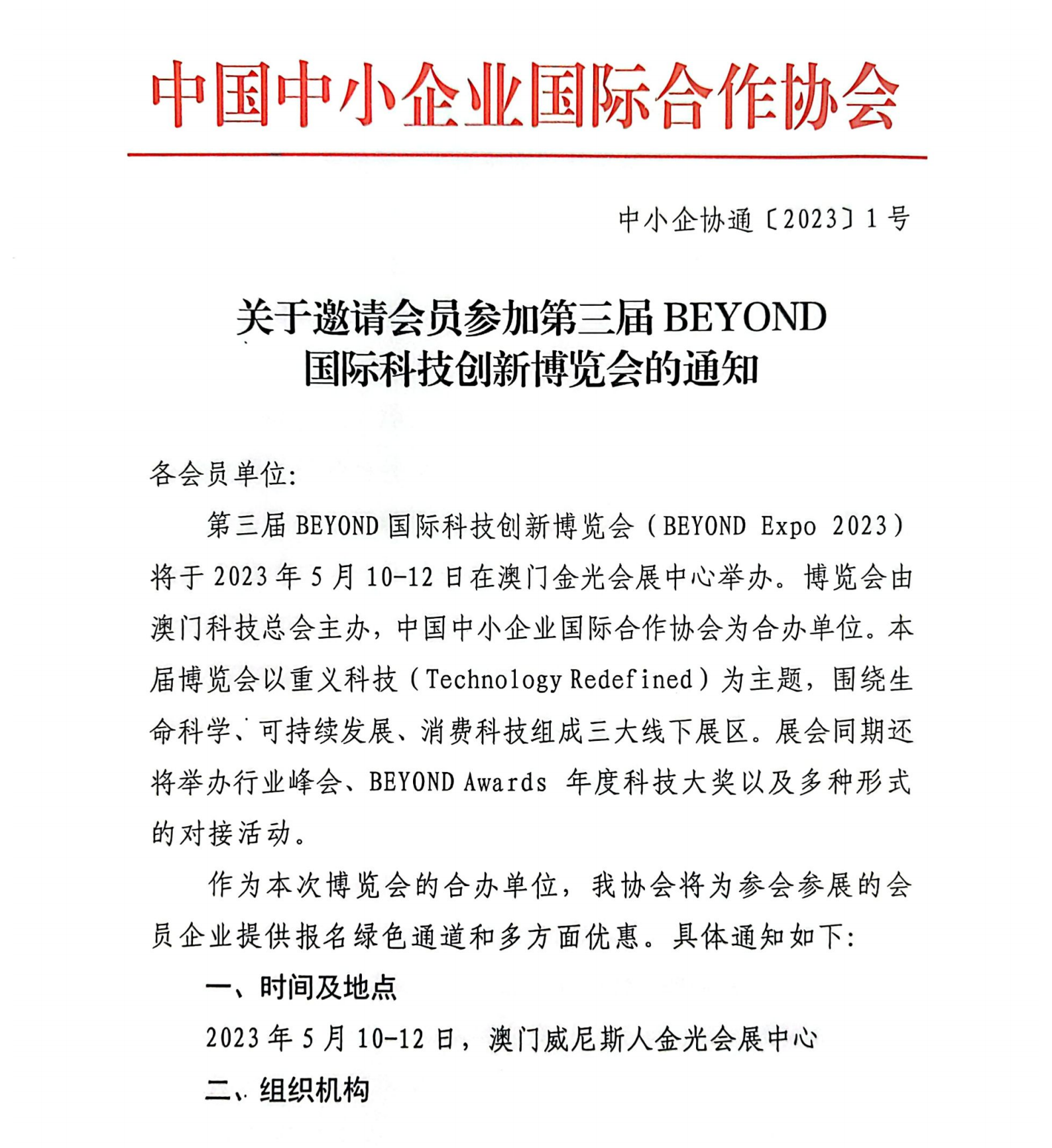 關于邀請會員參加第三屆BEYOND國際科技創(chuàng)新博覽會的通知