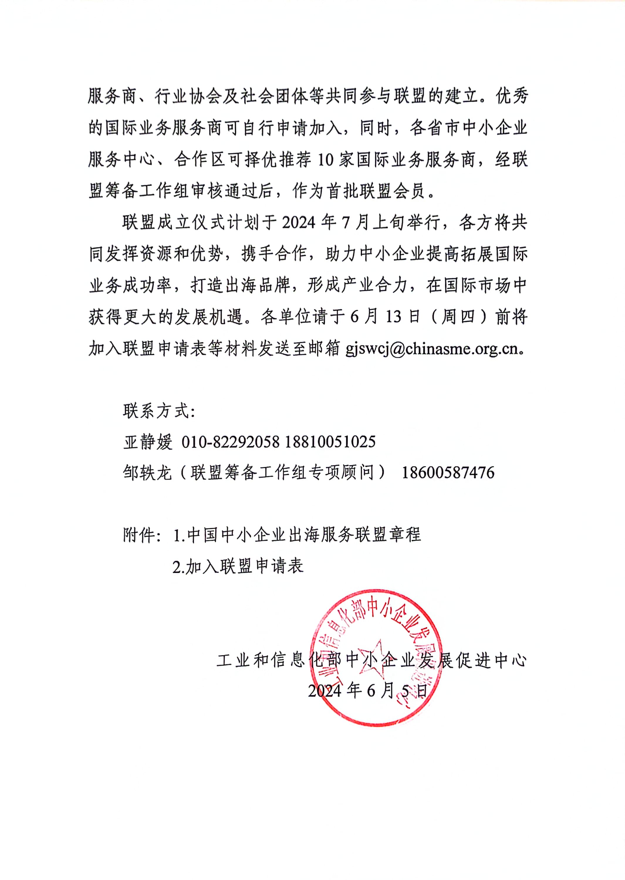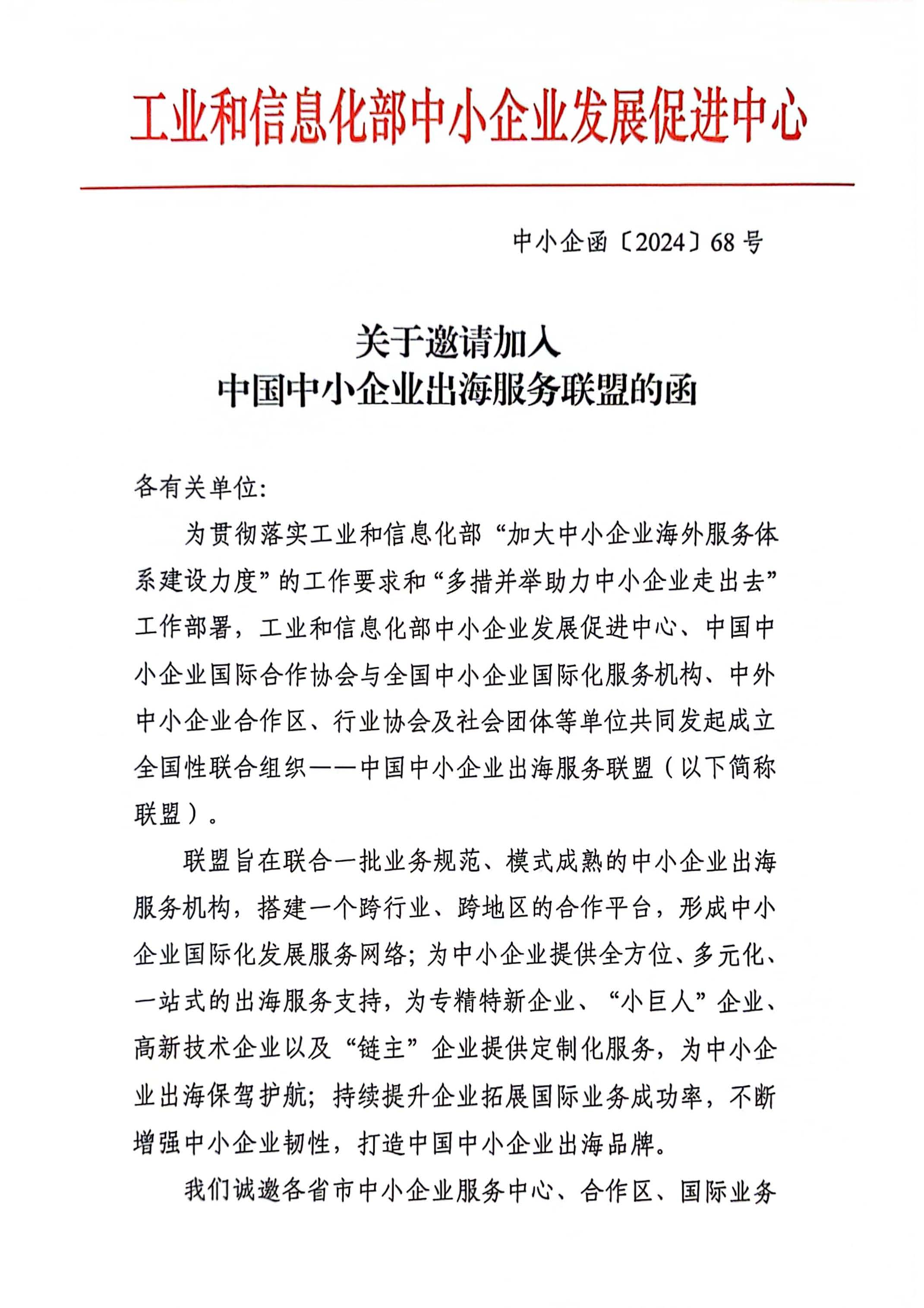 關(guān)于邀請加入中國中小企業(yè)出海服務聯(lián)盟的函